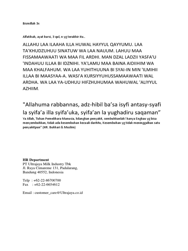Tulisan lengkap dari doa tersebut adalah sebagai berikut: