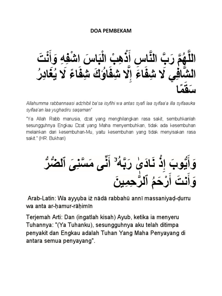 Ya allah tuhanku tuhan seluruh manusia, hilangkanlah segala penyakit yang hinggap.