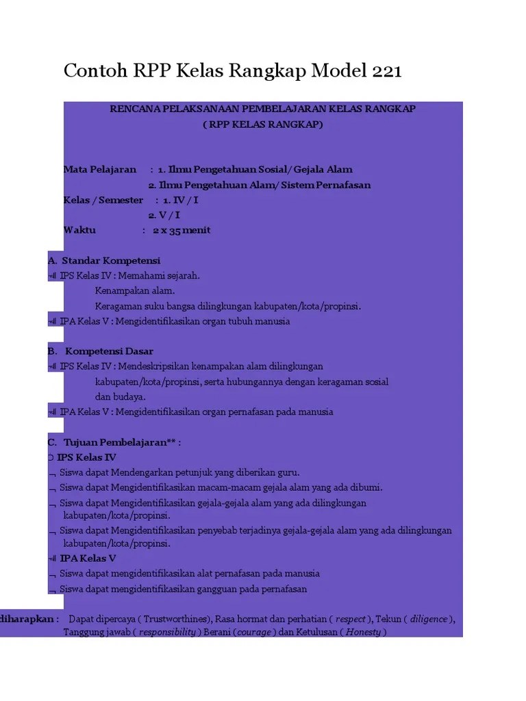 Kepala sekolah guru kelas rangkap mahmudi spd. Berikut yang dapat admin bagikan terkait rpp pembelajaran kelas rangkap model 211 kelas 3 dan 4 semester 2. Ilmu pengetahuan alam/ sistem pernafasan kelas / semester : Berikut ini adalah contoh rpp kelas rangkap model 211 kelas 4 dan 5 materi m yang bisa digunakan untuk melengkapi administarsi guru yang dapat di unduh secara gratis dengan menekan tombol download. Jun 25, 2021 · rpp pembelajaran kelas rangkap model 211.